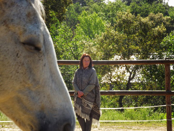 Para llegar a las cuadras hay dos caminos: el corto que es el que uso yo y el largo que es el de los caballos. Una vez en las cuadras utilicé el ‘silbido de caballos’ para que ella subiera. Habían dos caballos más en el campo que no estaban trabajando en el taller, y que también podían atender al silbido. Pero este silbido estaba solo destinado para Wendy y le invité con mi cuerpo y mi intención a que subiera a las cuadras para que estuviera mejor. Mi intención hacia ella era solamente esa: que estuviera en lugar cerrado para su propia comodidad. Al cabo de unos segundos Wendy comenzó su ruta hacia las cuadras mientras los otros dos caballos permanecieron quietos en el campo.