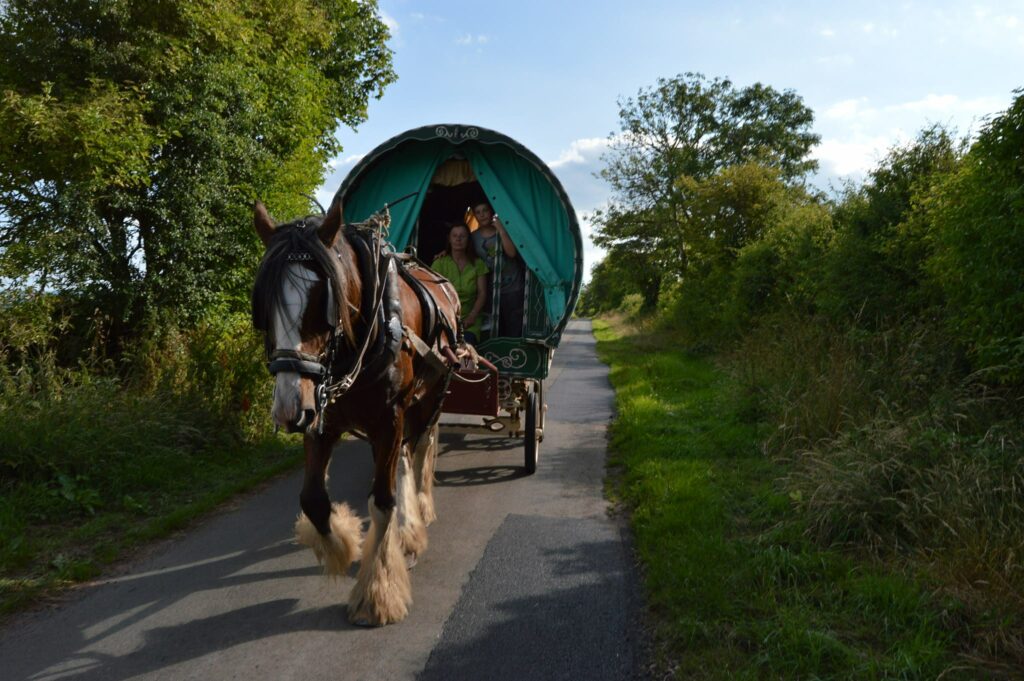 Hace unos días, por la mañana estaba conduciendo un Vardo (caravana) Romani tirado por un enorme y bellísimo Clydesdale llamado Bob, para devolverlo a su campamento de origen acompañada por Barny – dueño de ambos. Al mediodía conduje un coche hasta el aeropuerto de Manchester y, por la tarde iba en avión de regreso a casa. Fue una sensación peculiar ir de transporte en transporte haciendo un viaje por el tiempo en un solo día.